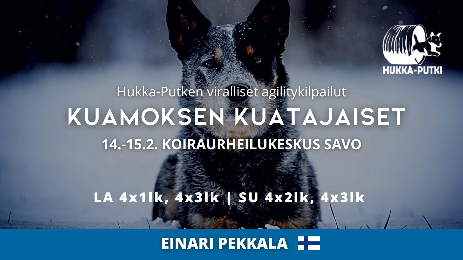 Hukka-Putki Ry järjestää viralliset agilitykilpailut 14.-15.2.2026 Koiraurheilukeskus SAVOssa, Siilinjärven Toivalassa vain 10km Kuopion keskustasta!![]()