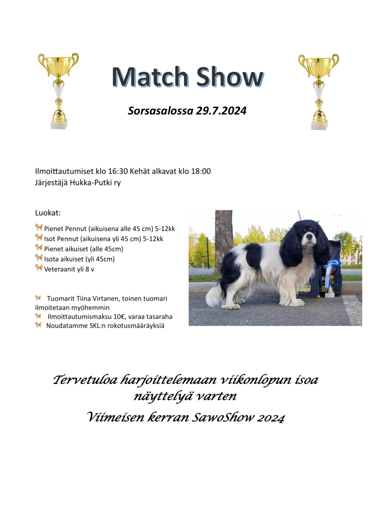Match Show 1.8.2022 Hukka-Putki järjestää yhteistyössä Kuopion raviradan kanssa match show -tapahtuman.Oiva tilaisuus...